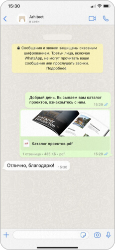 Можем начать с переписки в WhatsApp, это удобно и быстро