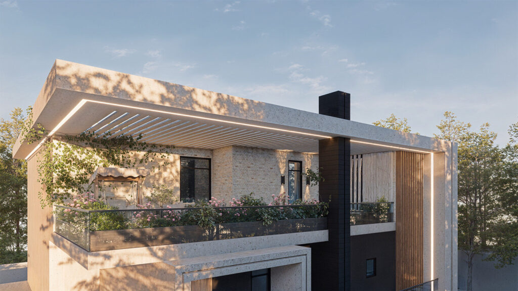 terasa sahip olan bu villa yemek ve oturma alanı haricinde 4 yatak odasına sahiptir. sinema odası + iki adet çalışma odası da tasarlanan bu projede tüm detaylar